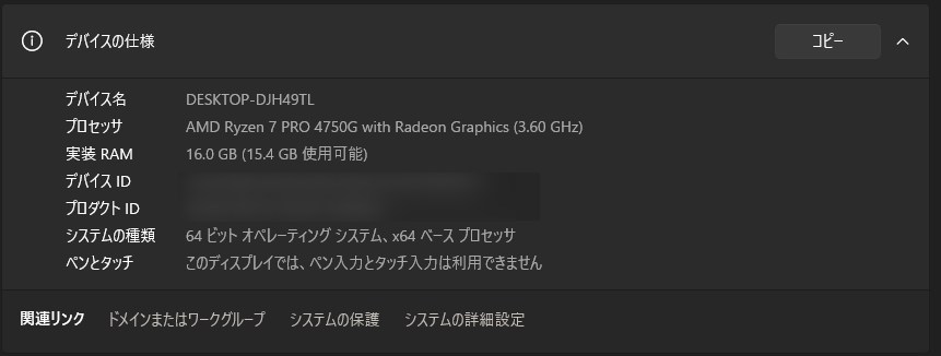 CPU: AMD Ryzen 7 PRO 4750G(8コア/3.6GHz)