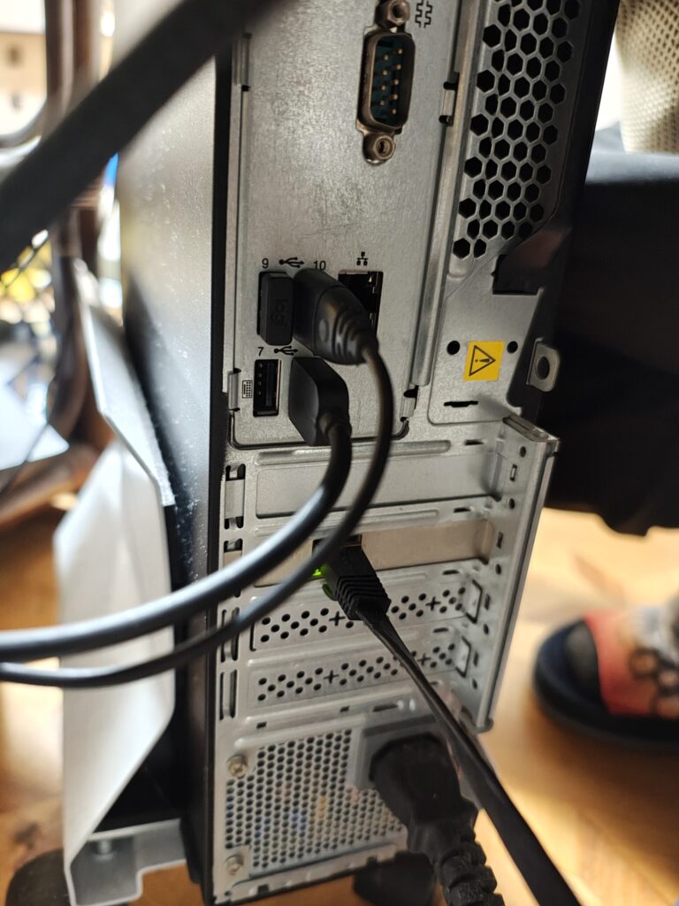 これがデスクトップの強み。こちらは背面の画像だが、全部USBが埋まっているが前面にはまだUSBの空きがある