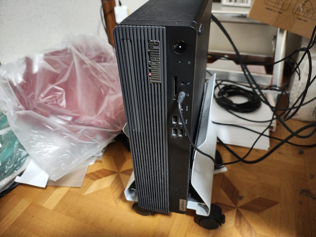 中古のThinkCentreをサンワサプライのスタンドに乗せて設置