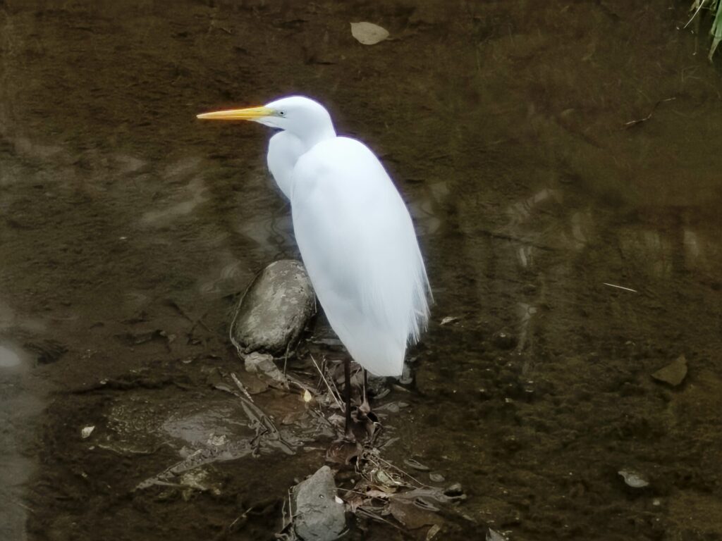 白鷺も散歩中に見かける。警戒心が高く鴨よりも撮影が難しい