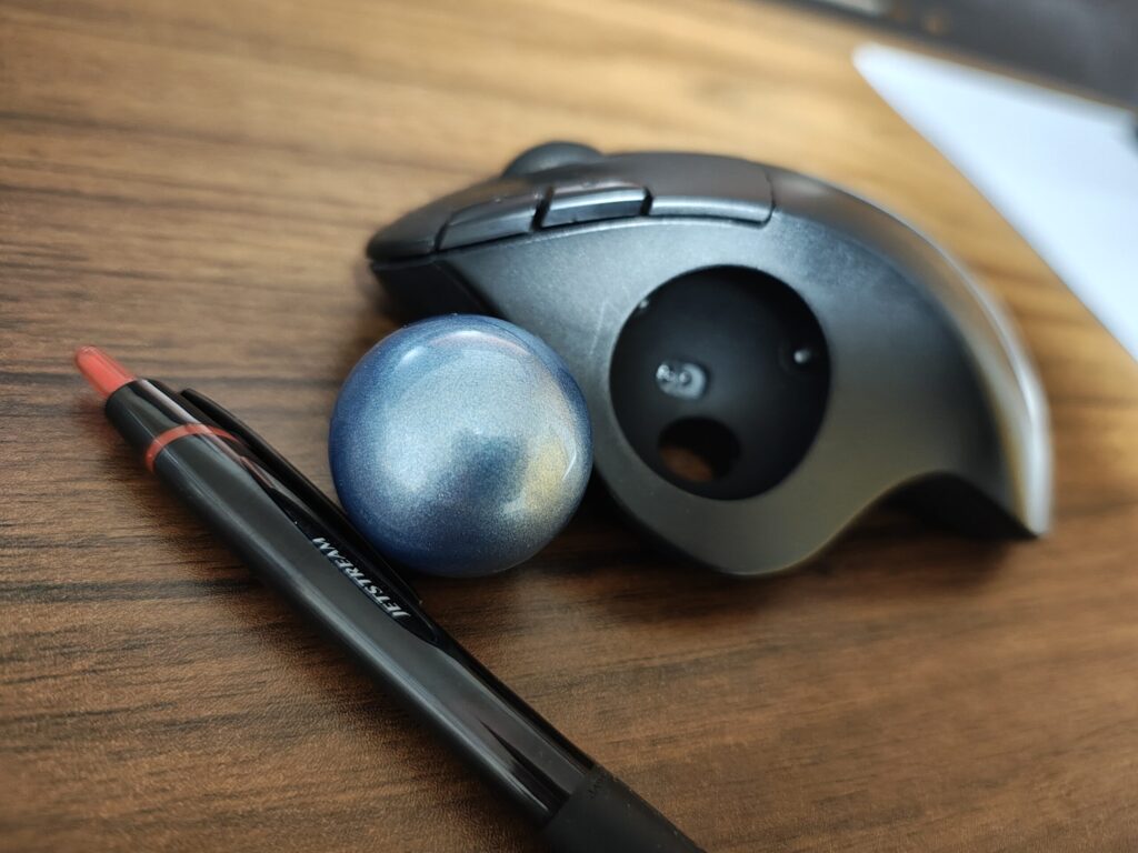 ボールの滑りを良くするための支持球(内部の小さな支え)に、手垢やホコリが溜まってくると、ボールの動きが「ガガガ」と少し重くなる。