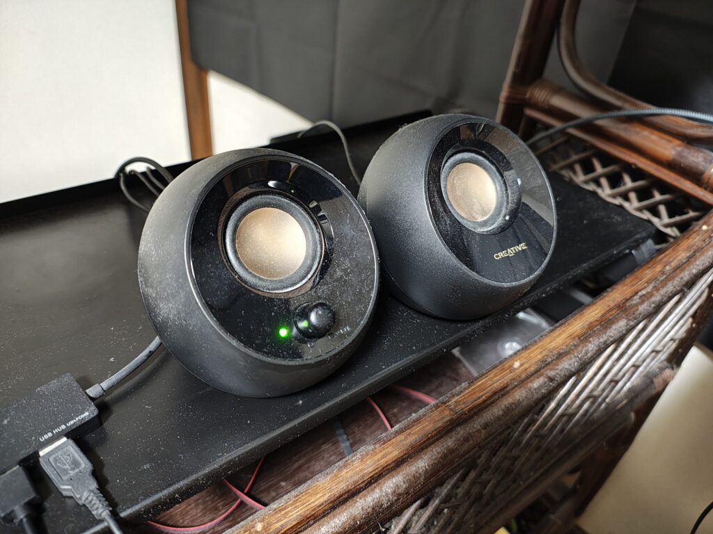 音の出力には、Creative(クリエイティブ)の「Pebble」というスピーカーを使っている。